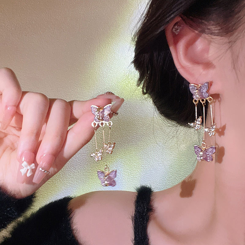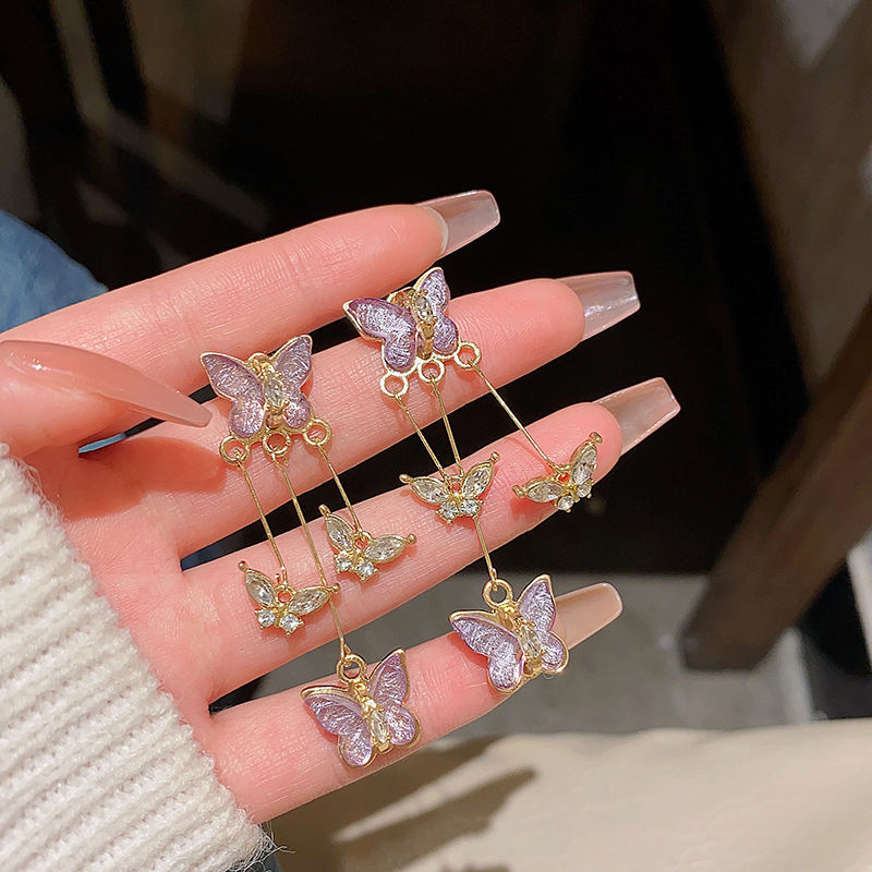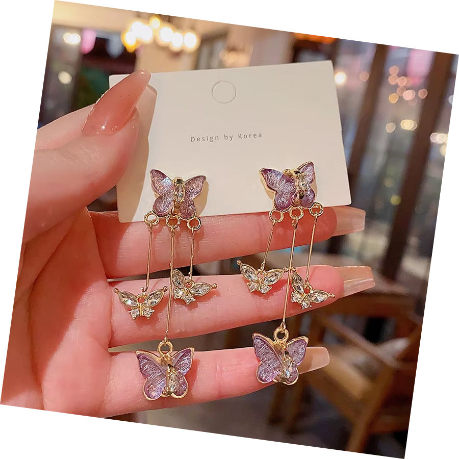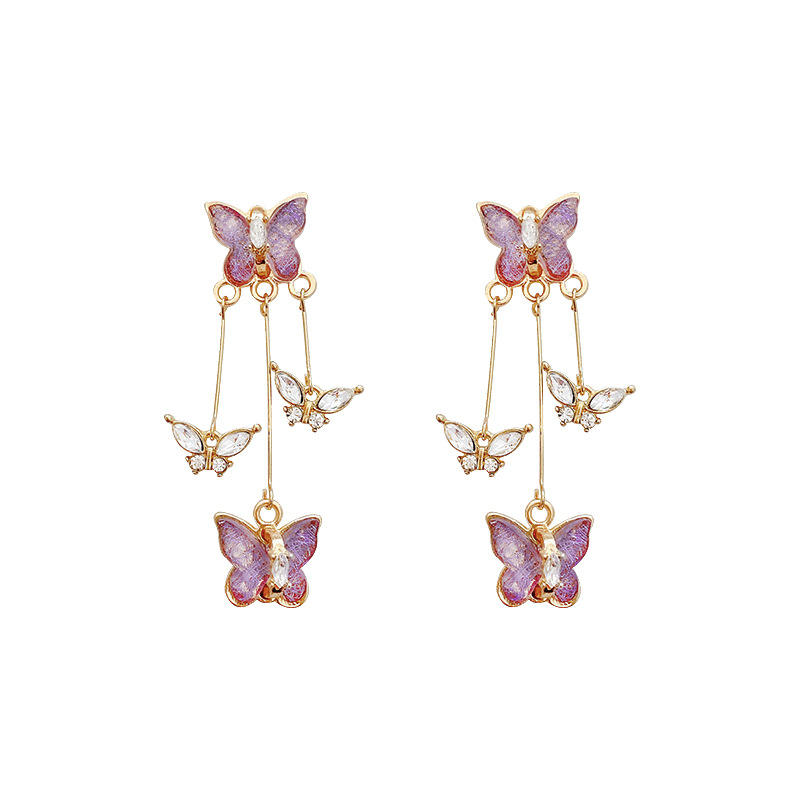 Butterfly Earrings with Purple Crystal | Silver Plated Needle