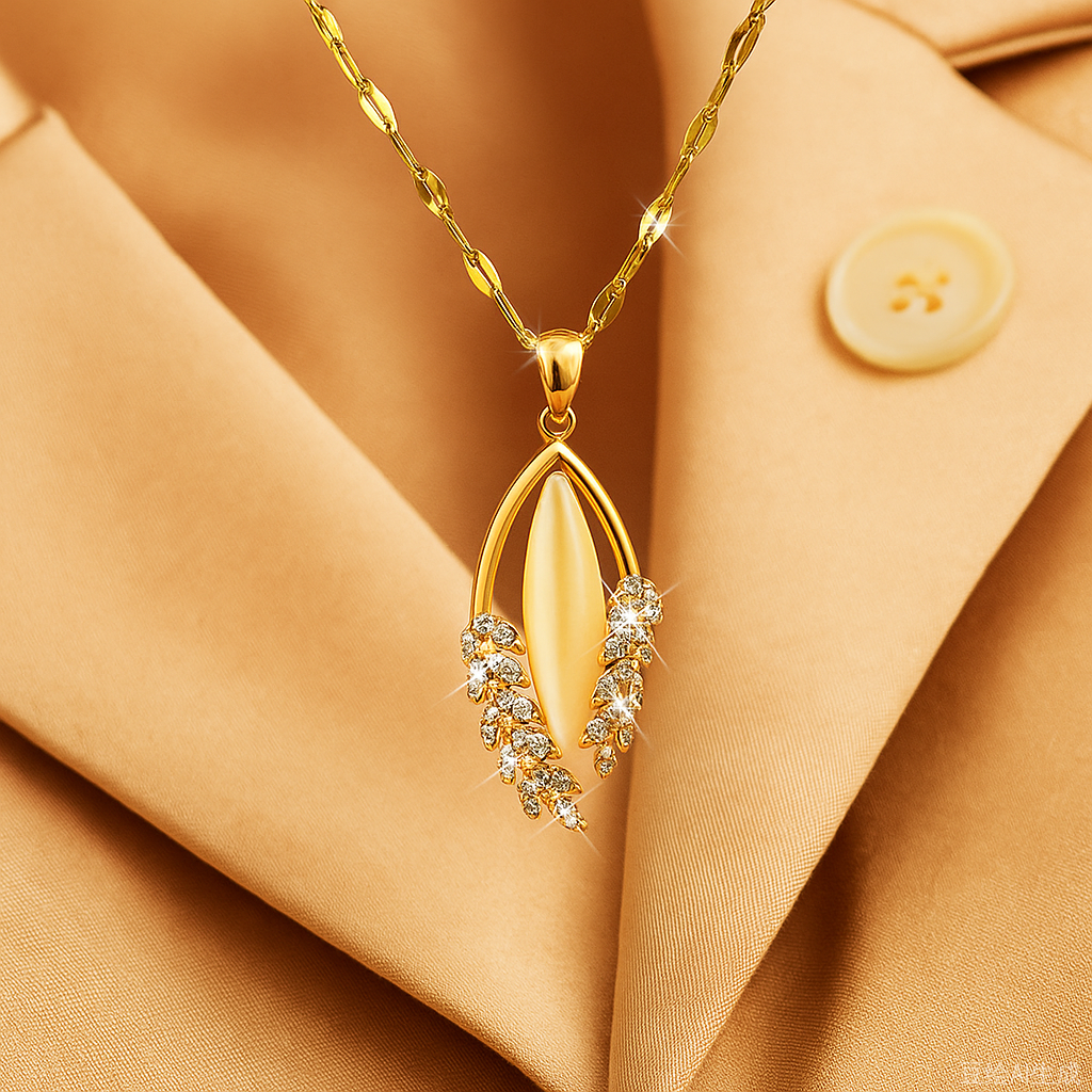 Cat's Eye Wheat Ear Gold Necklace – Timeless Shine with Nature's Charm