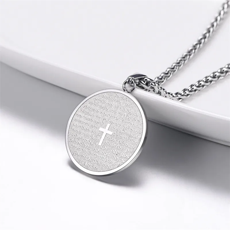 Christian Religious Stainless Steel Cross Pendant | Initial Disc Necklace - Faith-Inspired Gift