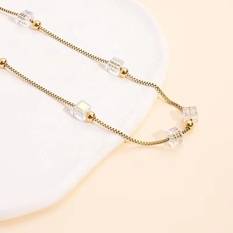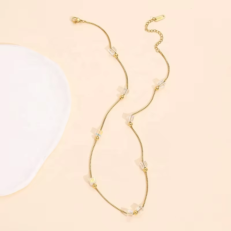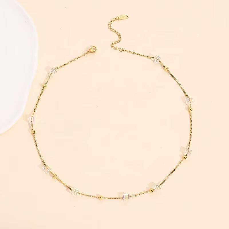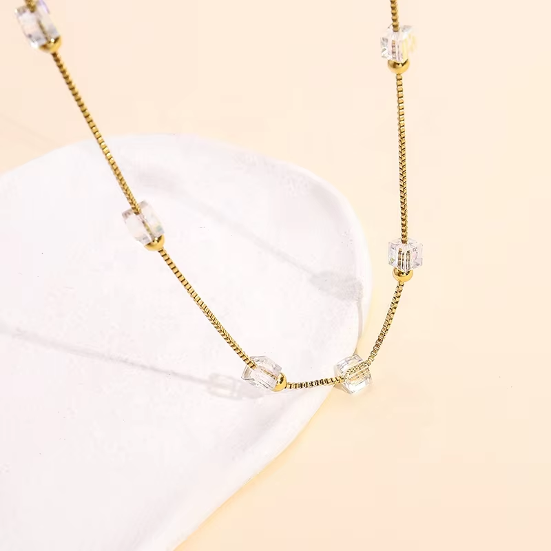 Crystal Cube Necklace - Titanium Steel Collarbone Chain for Women, Luxury Minimalist Design, Fashion Statement Piece for Influencers