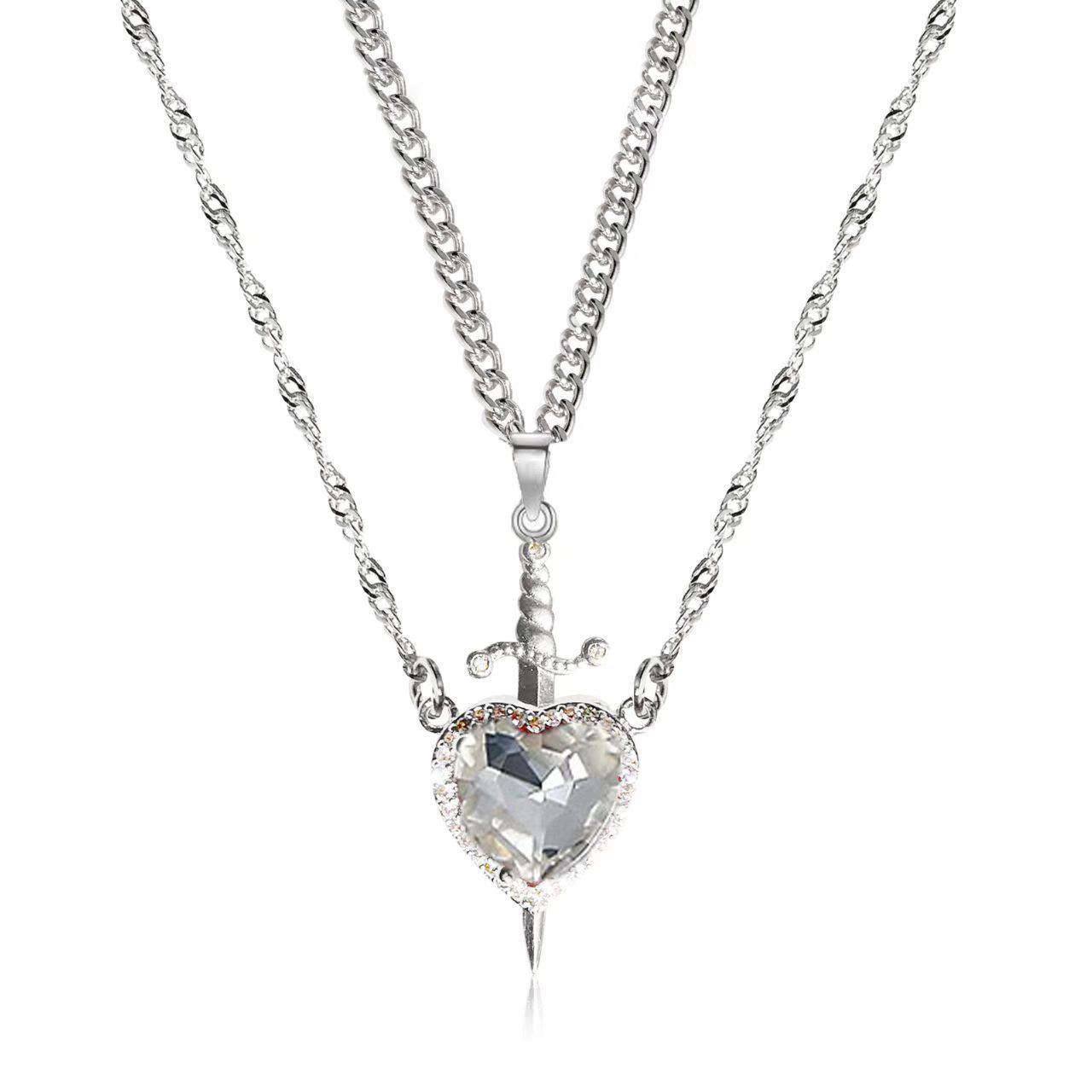 Crystal Heart Dagger Pendant Layered Necklace-Cupid's Arrow Design