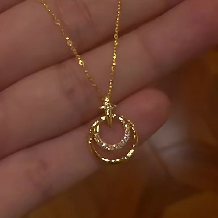 Minimalist 4-Point Star Round Pendant Necklace | Dainty Clavicle Chain for Women