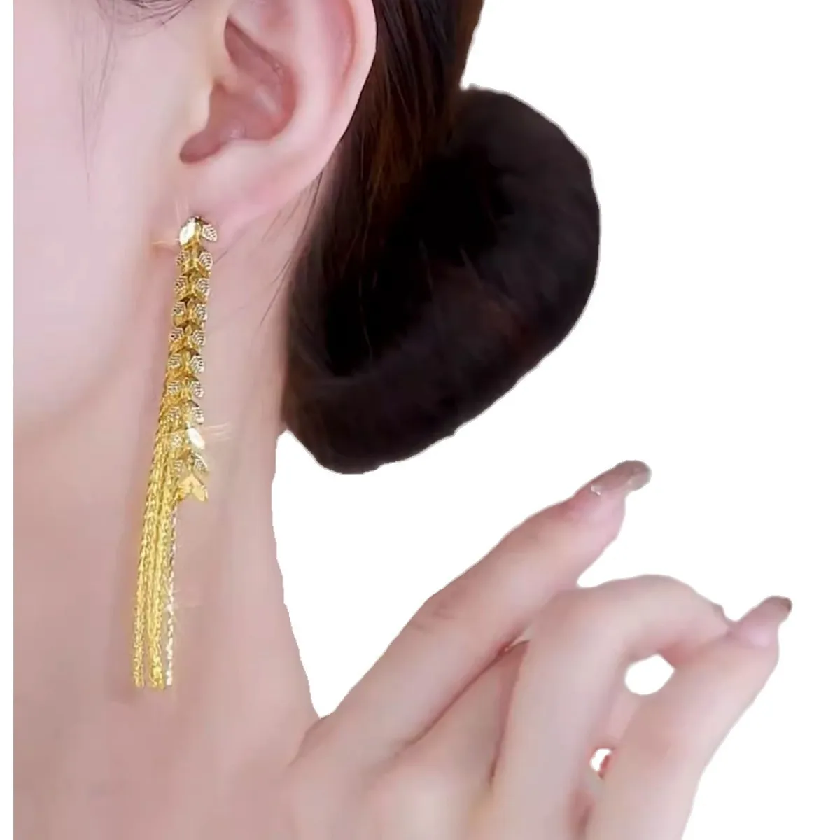 Vietnamese Sand Gold Wheat Tassel Earrings - Long Dangle Design for Elegant Sophistication