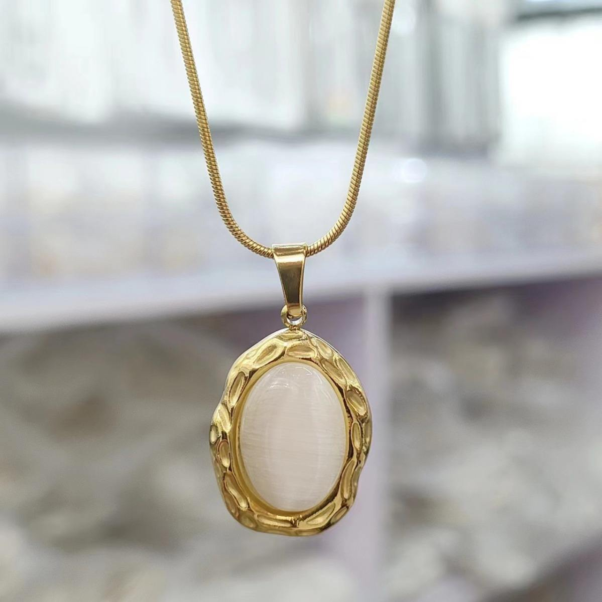 Vintage Oval Cat's Eye Pendant Necklace | Titanium Steel | Trendy INS Style