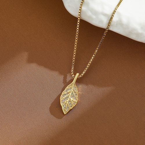 Golden Leaf Titanium Steel Necklace for Women - Fashionable Versatile Pendant Lock