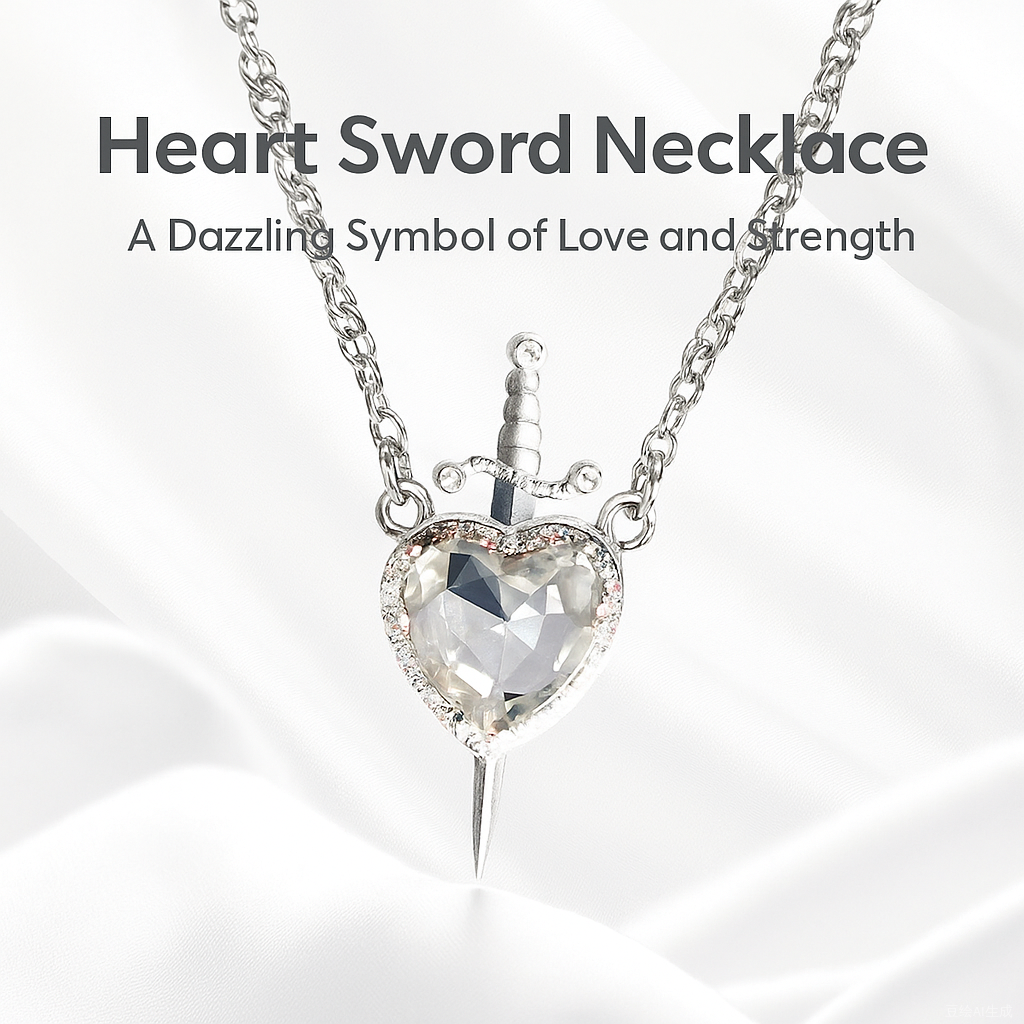 Crystal Heart Dagger Pendant Layered Necklace-Cupid's Arrow Design