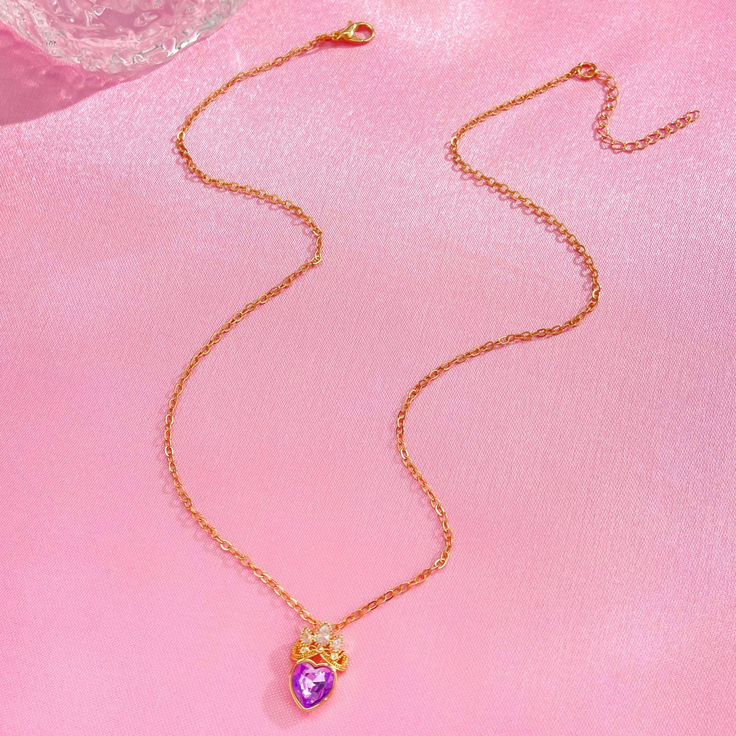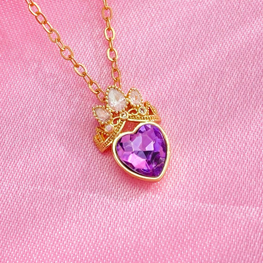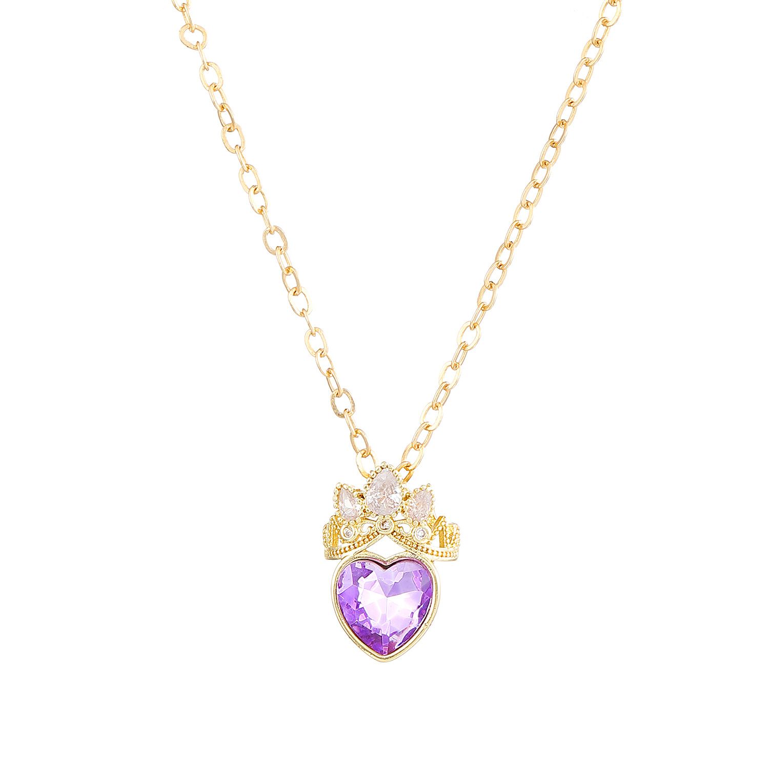 Elegant Purple Heart Pendant Necklace - Crown & Crystal Inlaid Hollow Design | Dainty Collarbone Chain for Women